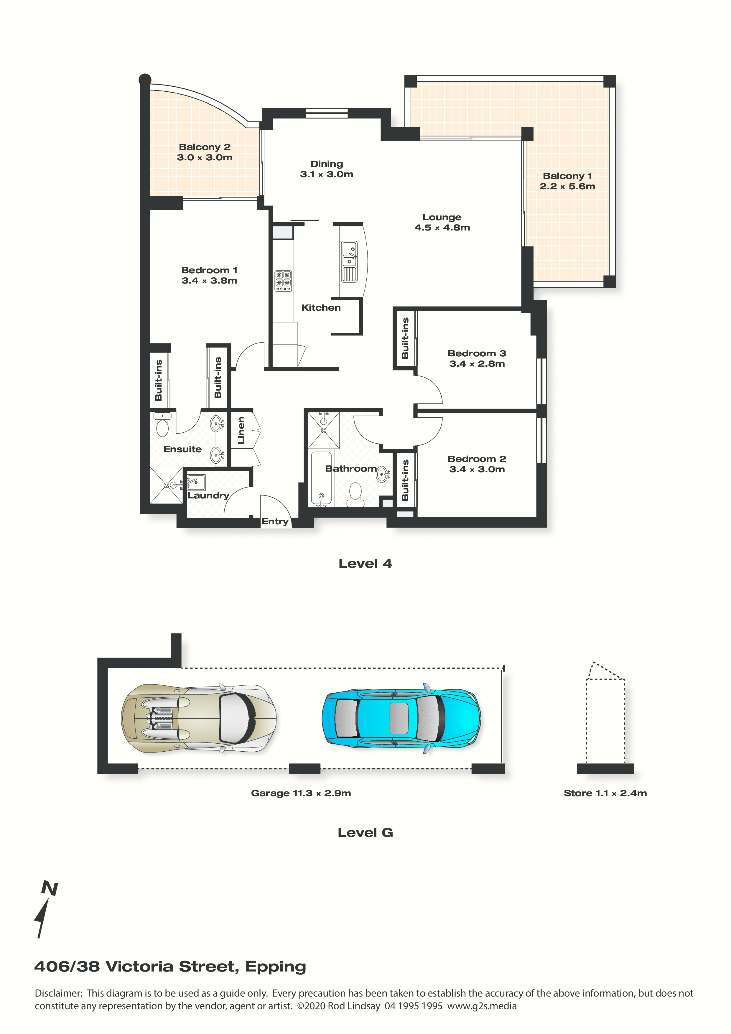 Internal & Balcony: 134m²